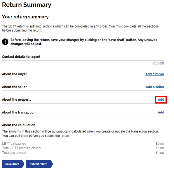 If you select ‘yes’ this will populate the ‘About the Additional Dwelling Supplement (ADS)’ section on the ‘Return summary’ screen.